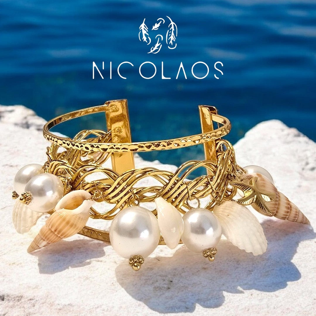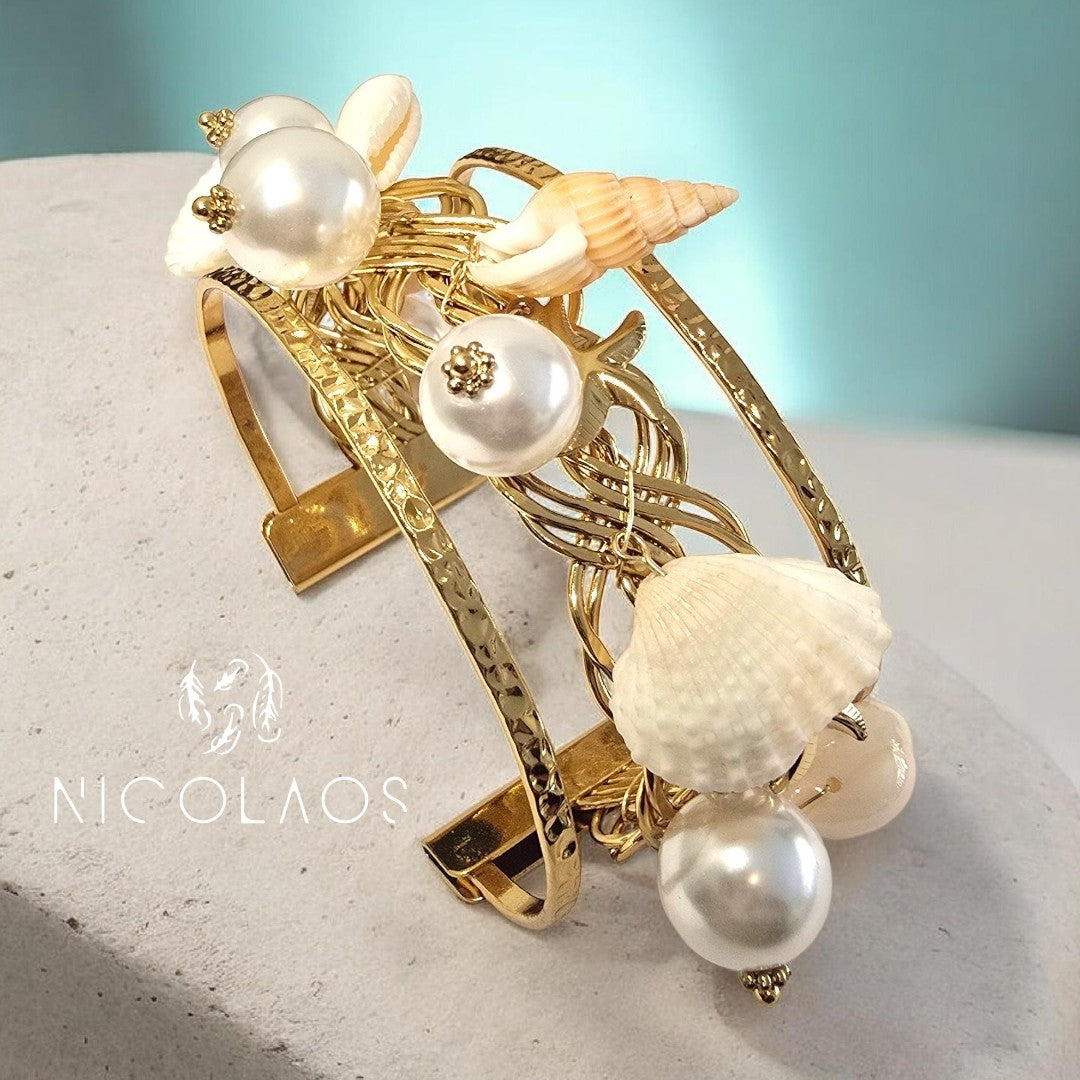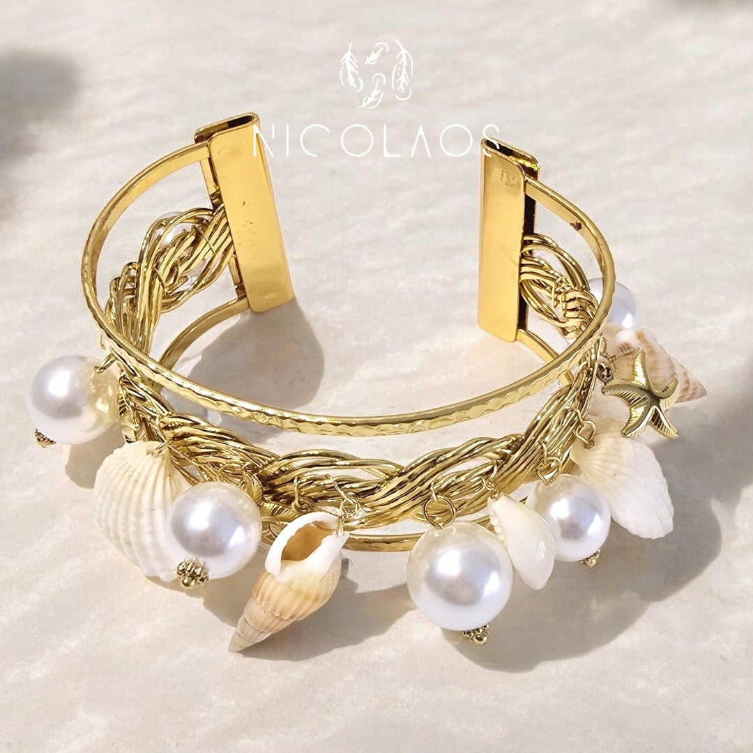 Βραχιόλι 'Sea in love' απο ανοξείδωτο ατσάλι με κρεμαστά Κοχύλια και πέρλες