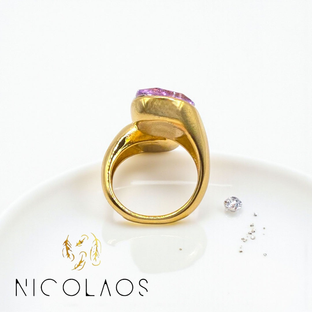 Δαχτυλίδι 'Gran Lilac' απο ανοξείδωτο ατσάλι με μεγάλο ζιργκόν και πέρλα