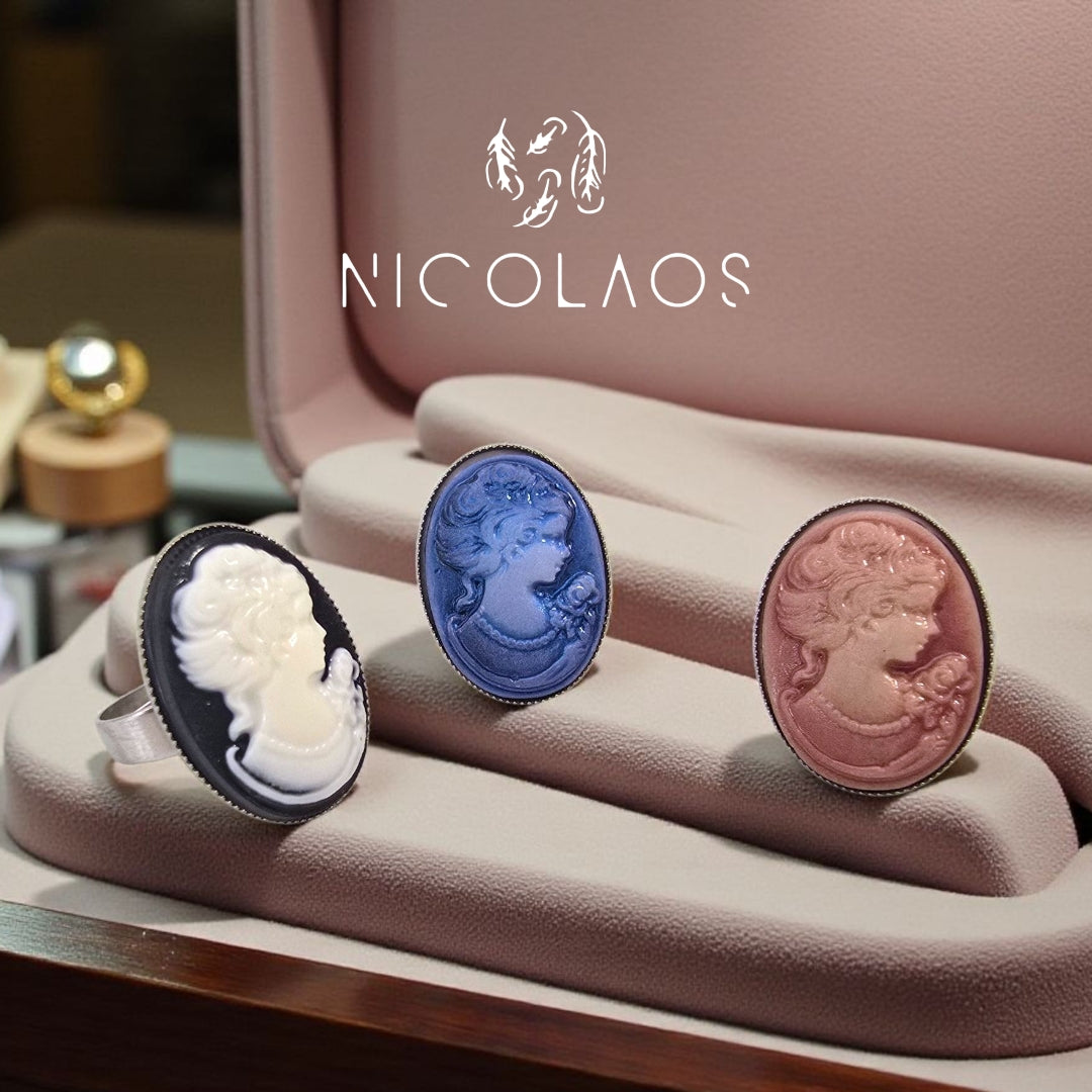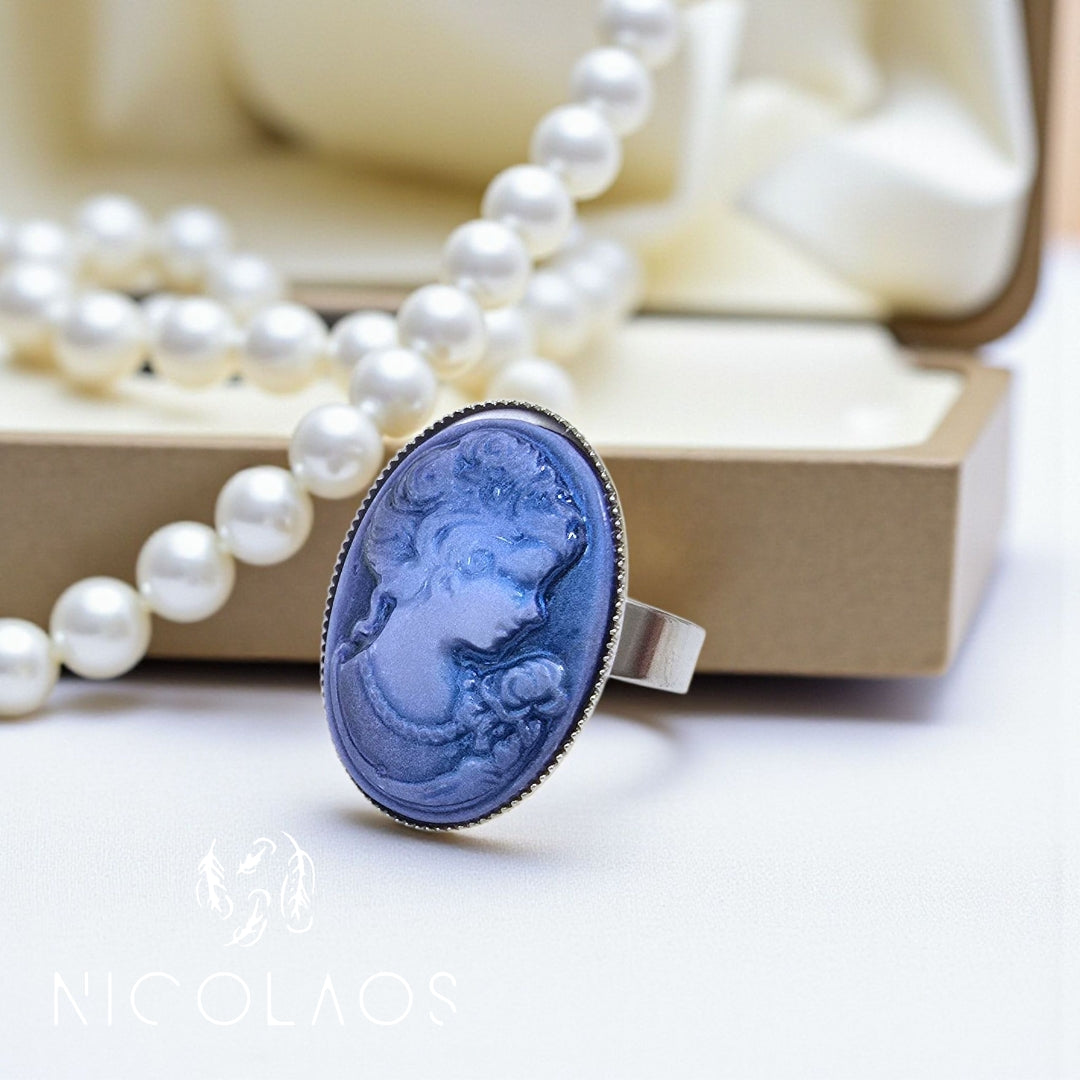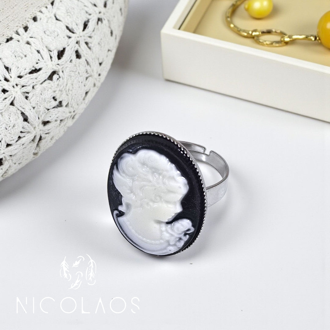 Δαχτυλίδι 'Lady in mirror' απο ανοξείδωτο ατσάλι με ανάγλυφο καμέο