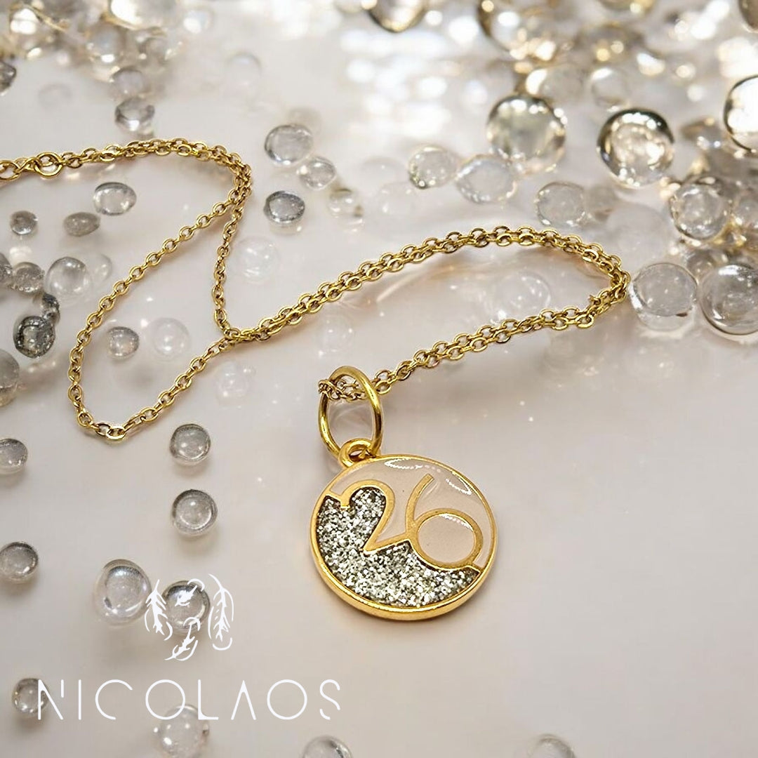 Κολιέ Γούρι 26 'Joy' απο ανοξείδωτο ατσάλι με βαφή γκλιτερ σμάλτου