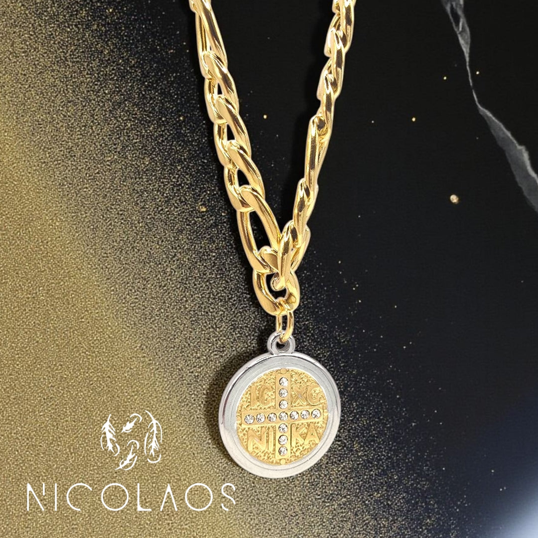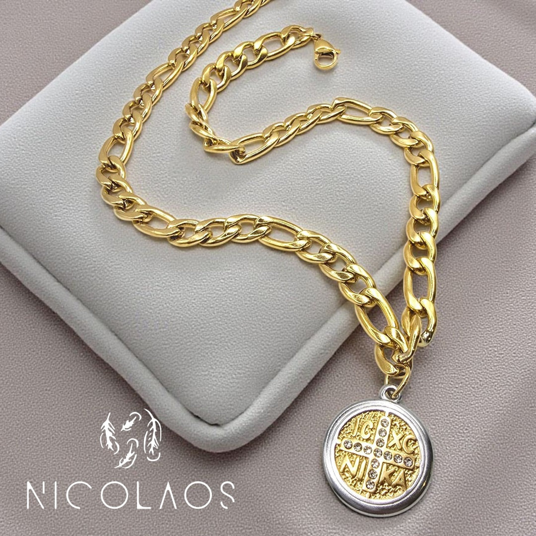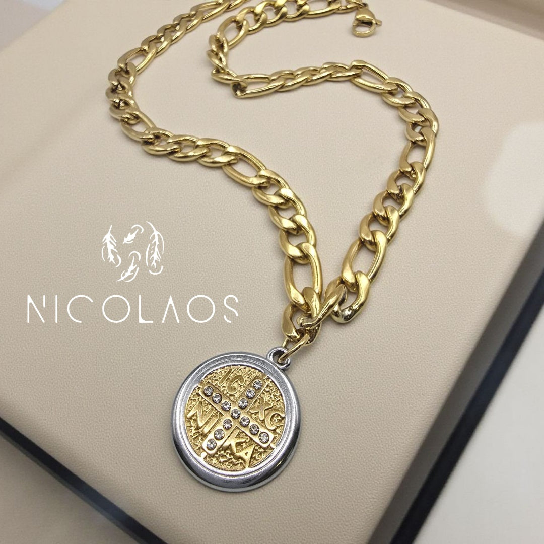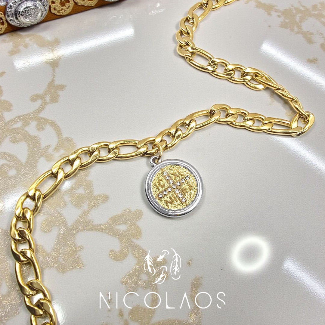 Κολιέ 'Constantine' από ανοξείδωτο ατσάλι με λευκά ζιργκόν