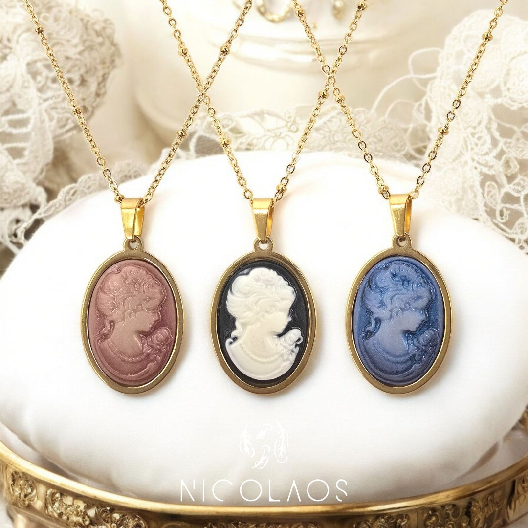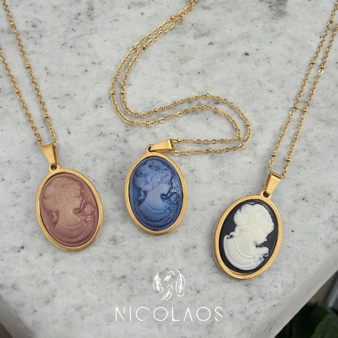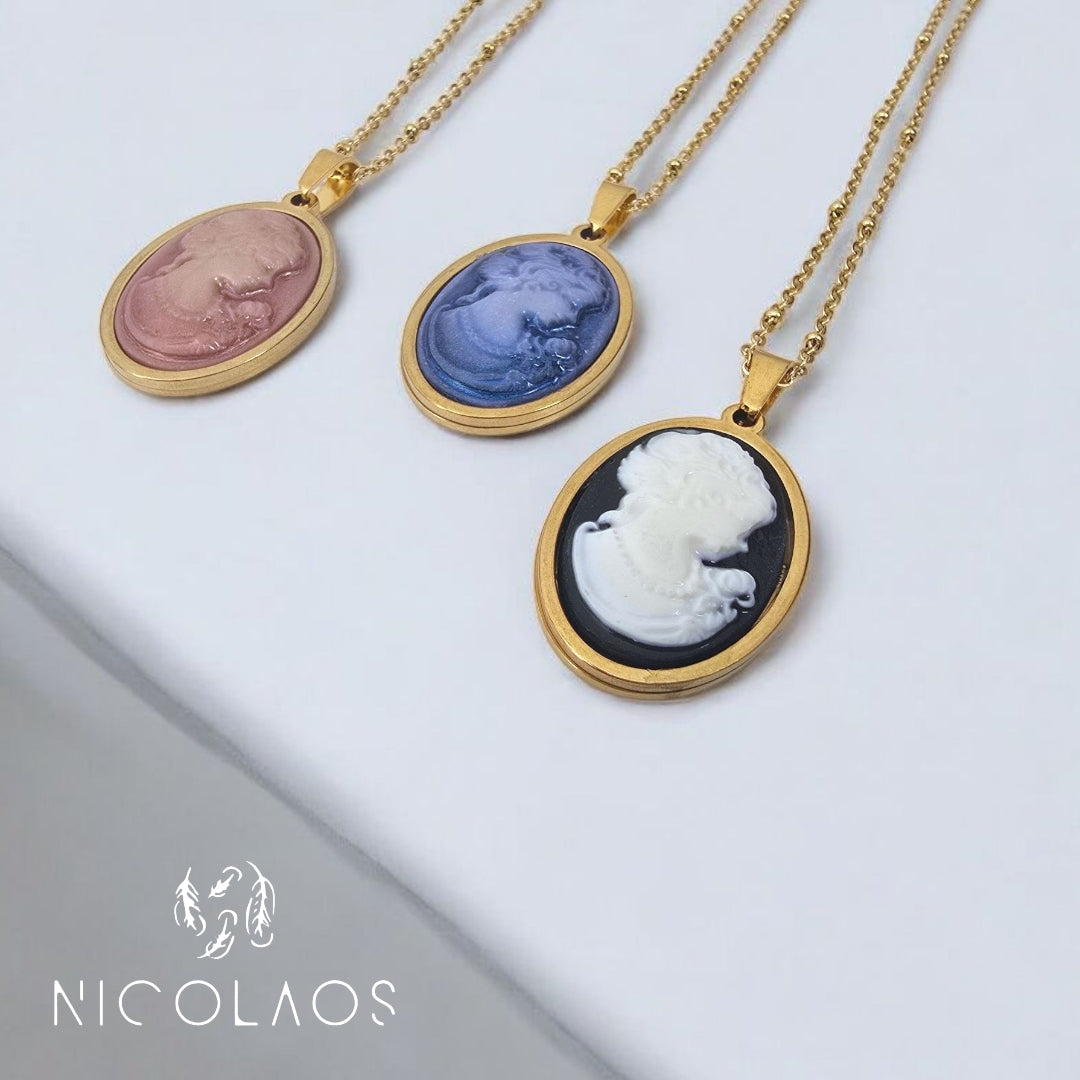 Κολιέ 'Lady in mirror' απο ανοξείδωτο ατσάλι με ανάγλυφο καμέο