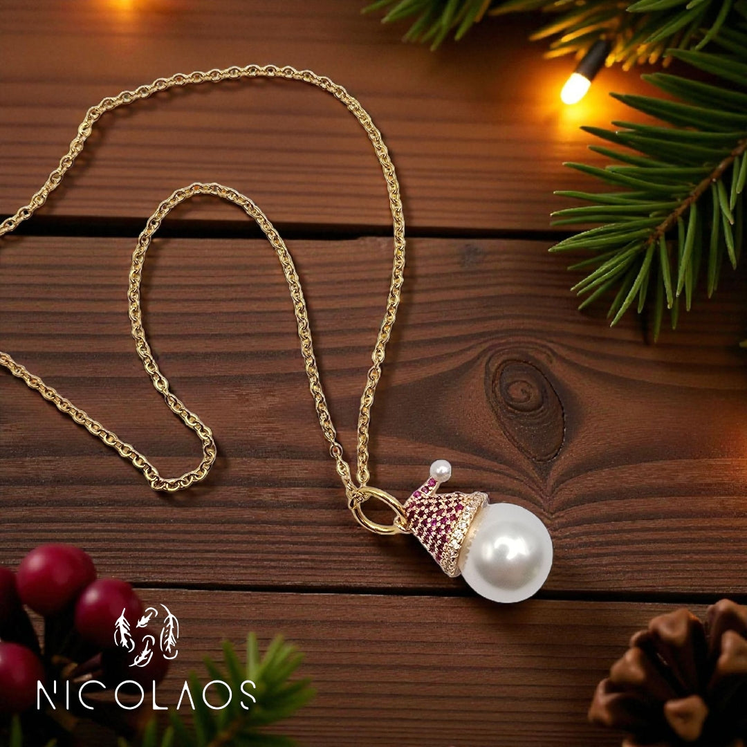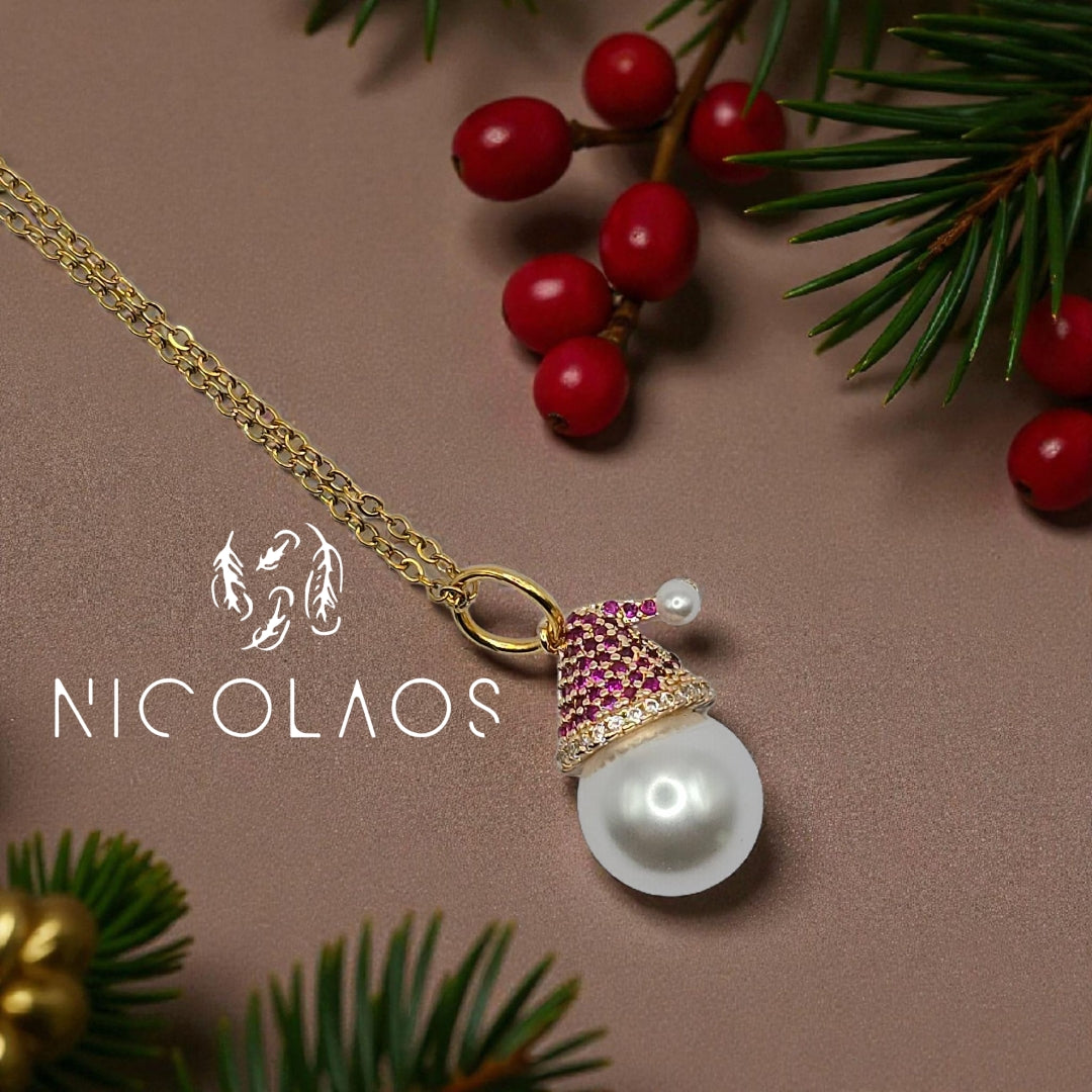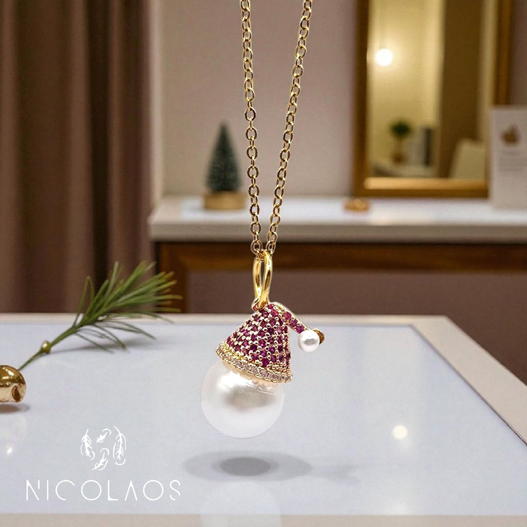 Κολιέ 'Shine Santa' απο ανοξείδωτο ατσάλι με φούξια ζιργκόν