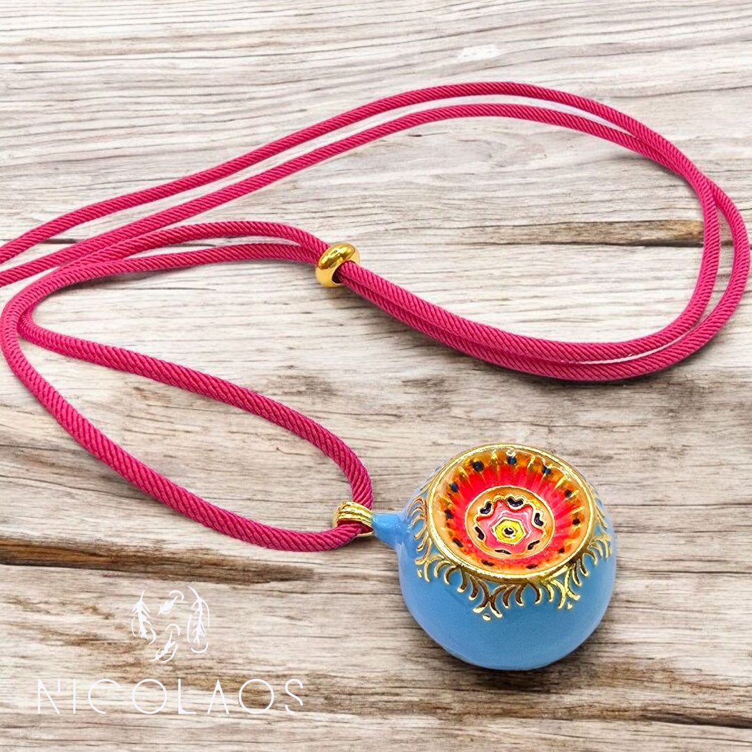 Κρεμαστό κολιέ 'Mandala' απο ανοξείδωτο ατσάλι με λεπτομερή βαφή σμάλτου