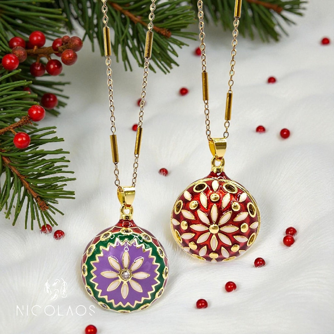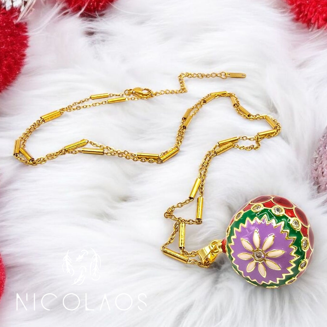 Μακρύ κολιέ 'Candy ball' διπλής όψης απο ανοξείδωτο ατσάλι με βαφή σμάλτου