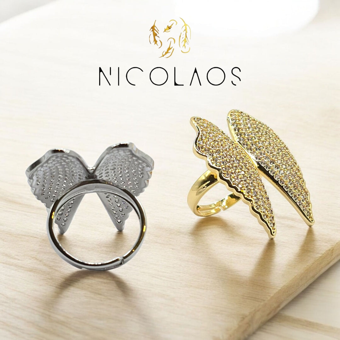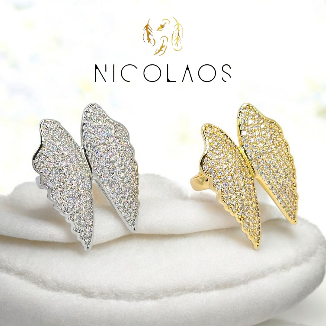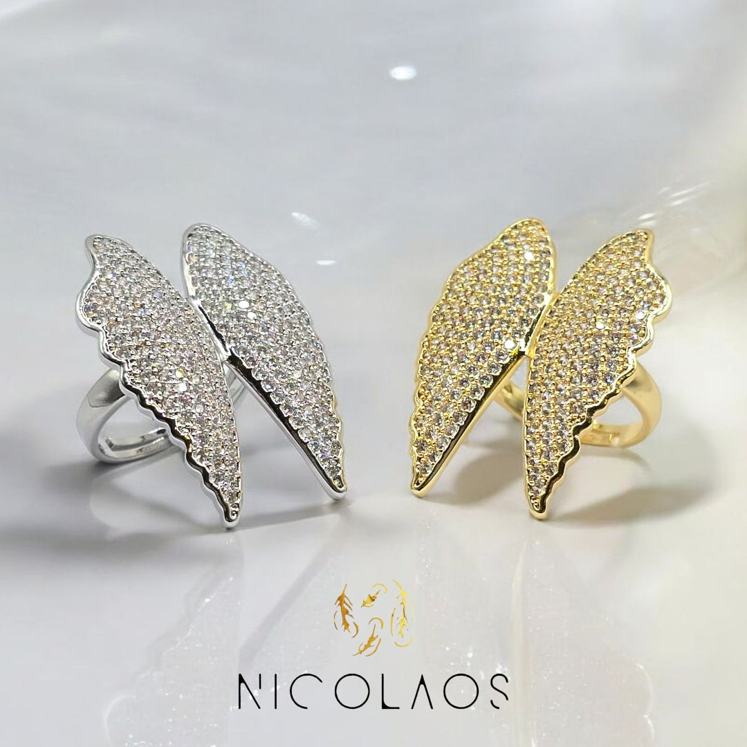 Μεγάλο Δαχτυλίδι 'Angel flying' από ανοξείδωτο ατσάλι με λευκά ζιργκόν