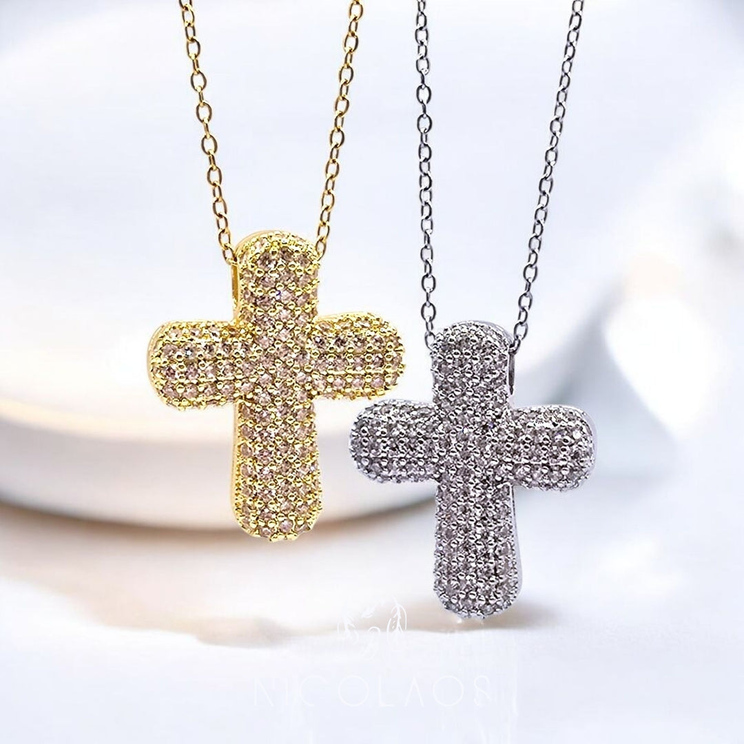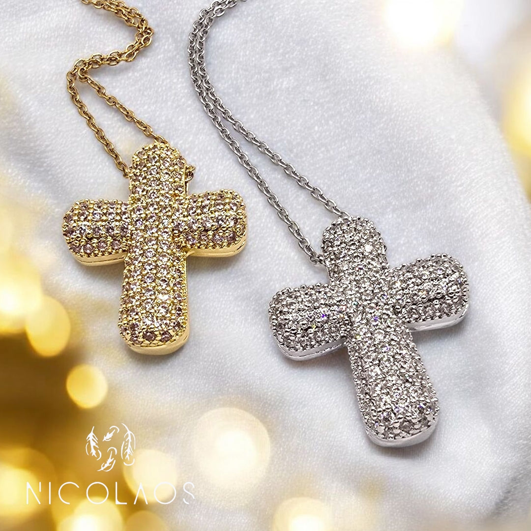 Σταυρός 'Fede granta' απο ανοξείδωτο ατσάλι με λευκά ζιργκόν (η αλυσίδα περιλαμβάνεται)