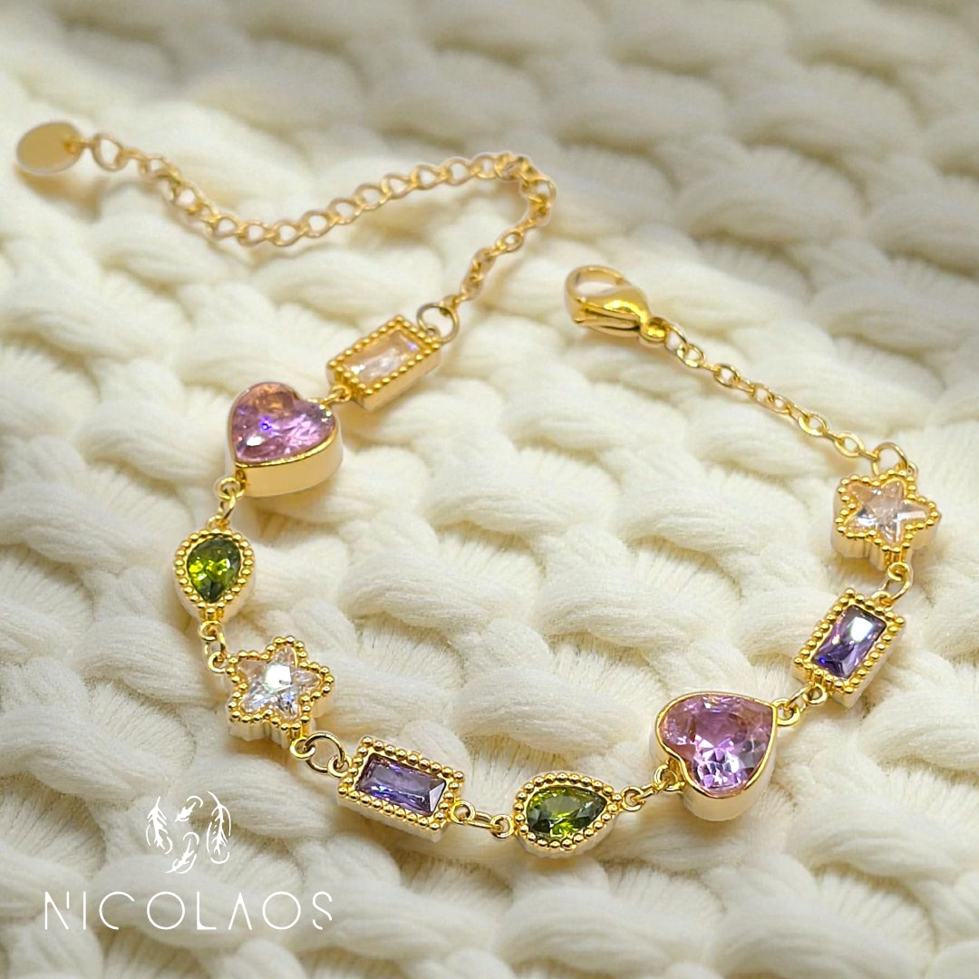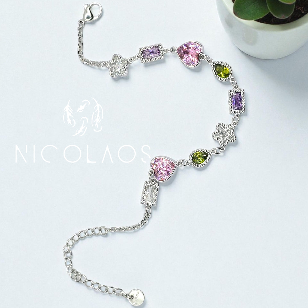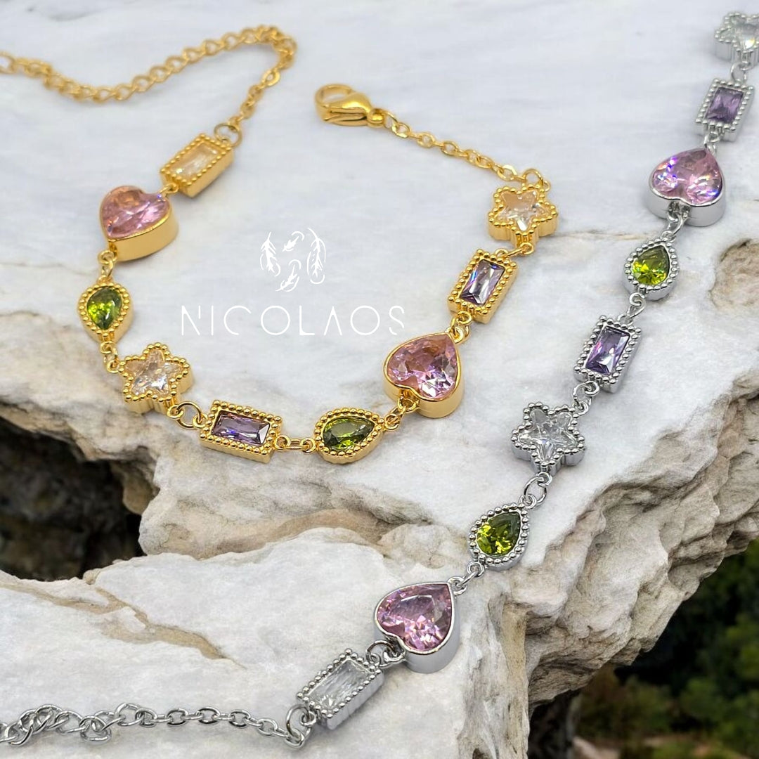 Χειροποίητο βραχιόλι 'Symbolsium' απο ανοξείδωτο ατσάλι με πολύχρωμα ζιργκόν